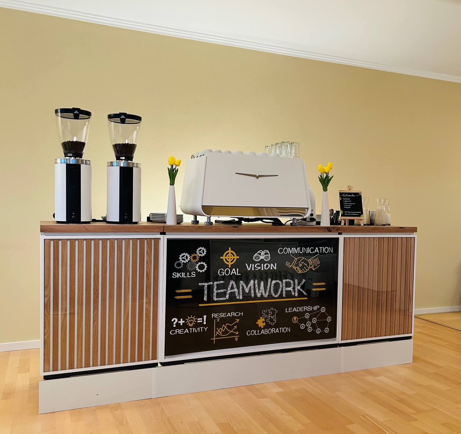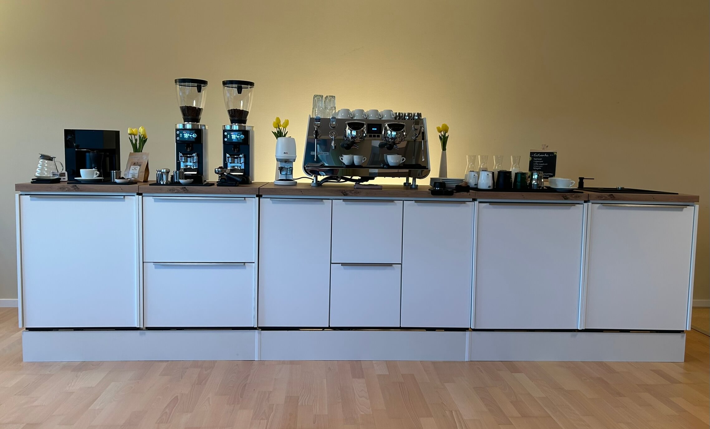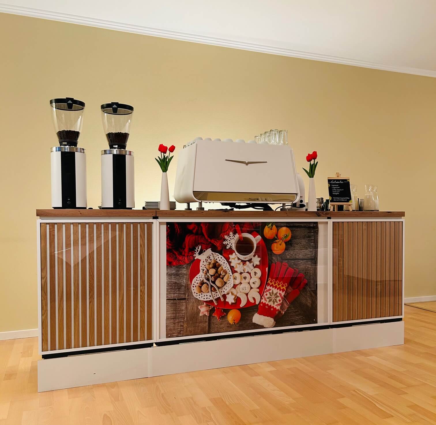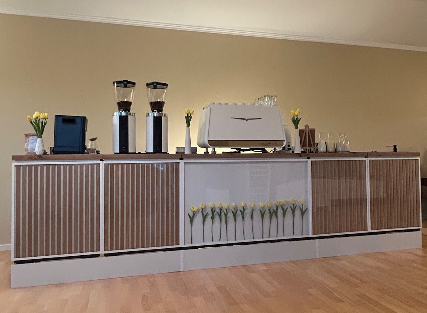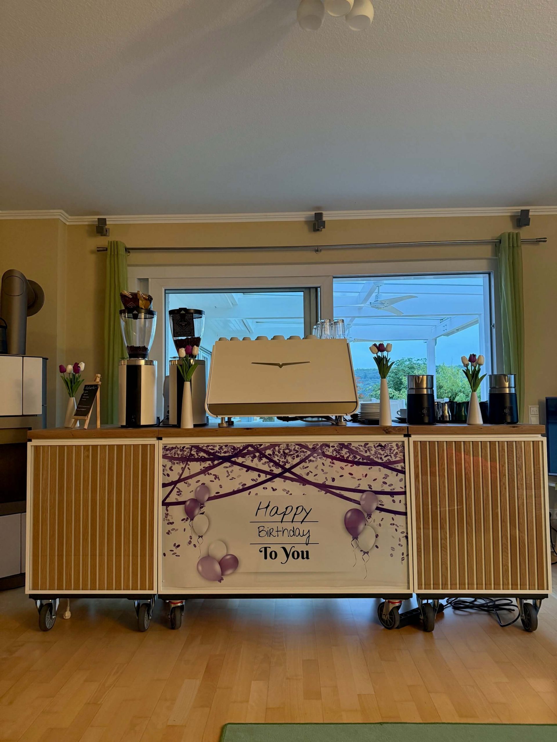 Die mobile Kaffeebar passt sich perfekt an jede Eventgröße und Location an – durch die modularen Module ist der Aufbau jederzeit anpassbar.