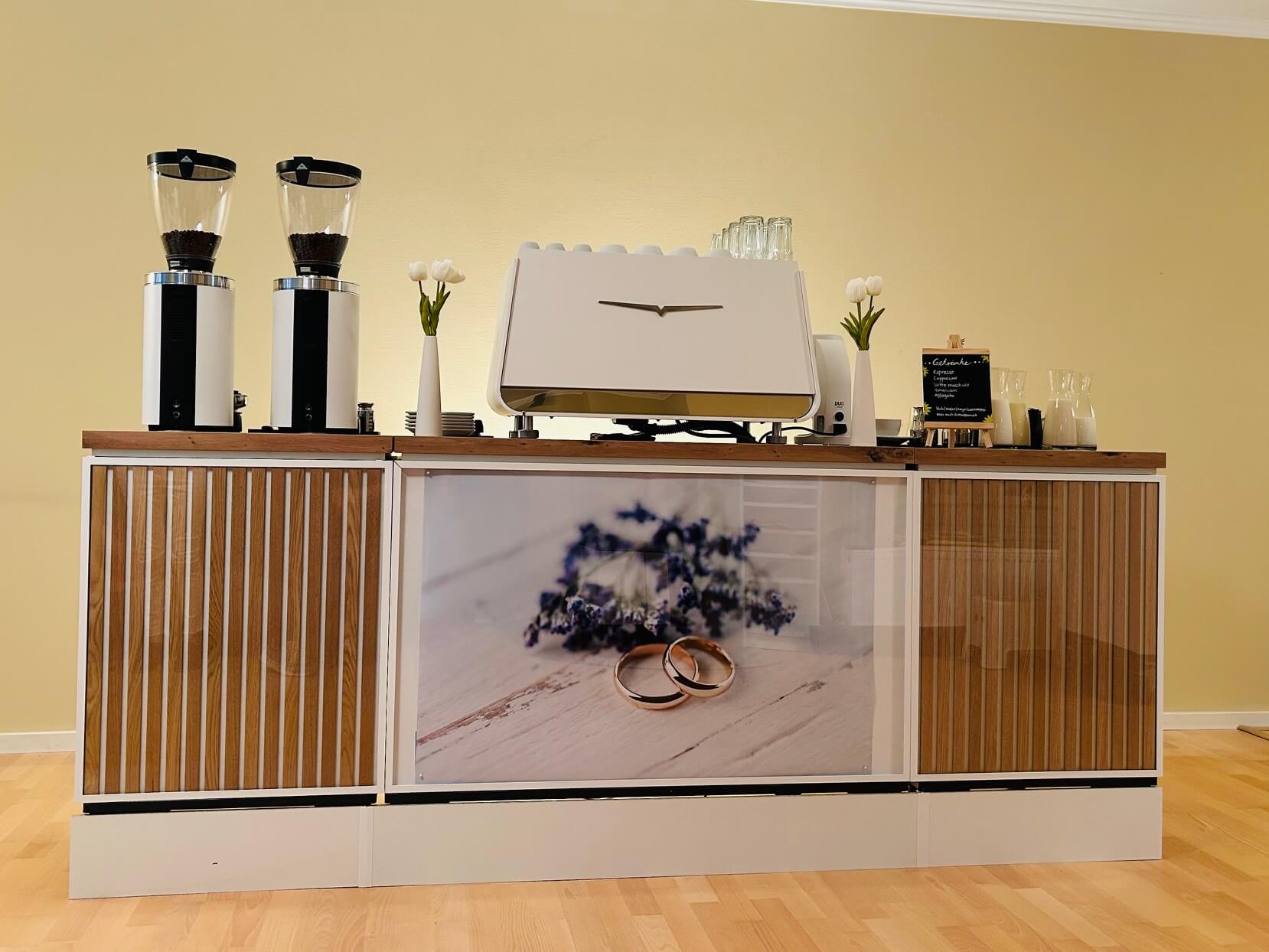 Unsere modulare Kaffeebar ist das Highlight für besondere Events und Locations jeder Art. Ob kleiner Empfang oder großes Event – wir finden die passende Größe und Form für Euren Anlass.