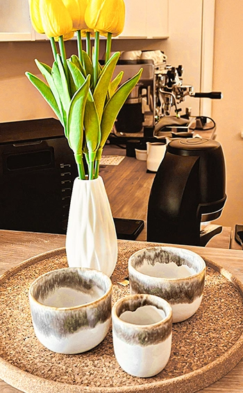 Ob KLASSISCH als Espresso, Cappuccino, Latte Macchiatto oder MODERN als Flat White, Hand-Brew oder Americano, mit oder ohne Koffein, laktosefrei, mit Hafer oder Soya – jede Tasse wird nach eigenen Rezepten mit handverlesenen Zutaten, Hingabe und Präzision zubereitet.